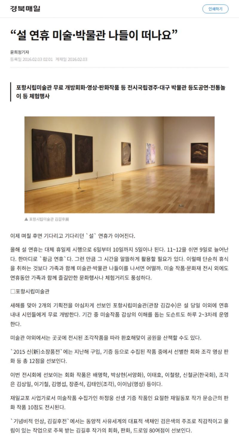 | [2016.02.02] 2016 “설 연휴 미술·박물관 나들이 떠나요” - 경북매일 |