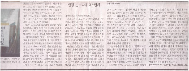 | [2008.12.04] 2008 이대형의 ‘큐레이터 따라하기’ 행복한 ‘변방의 고수’ 김동기-파이낸셜뉴스 |