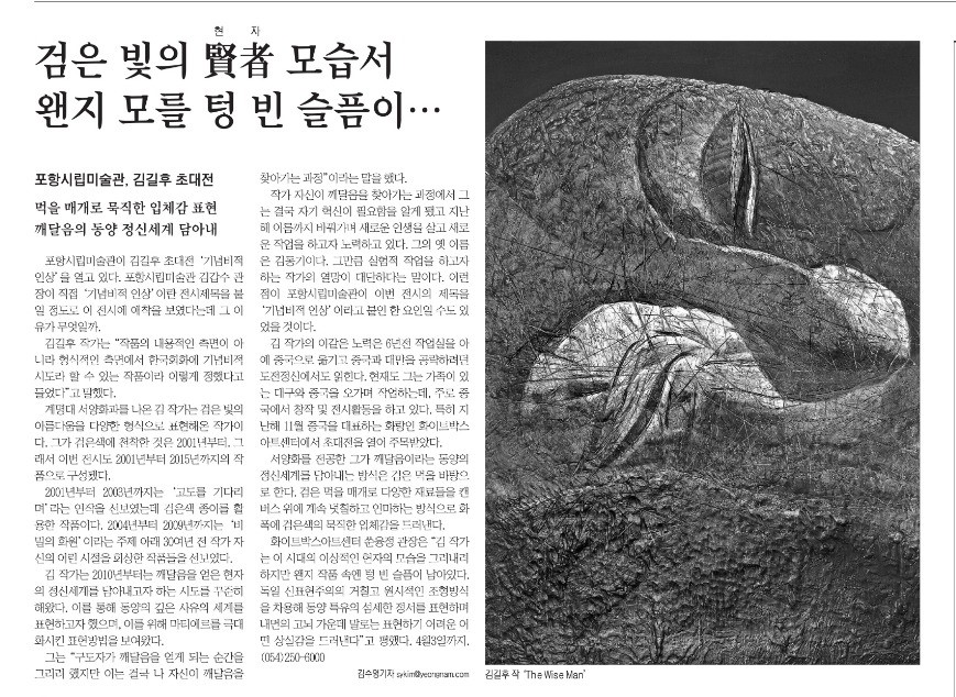 | [2016.01.15] 2016 검은빛의 賢者 모습 왠지 모를 텅 빈 슬픔이 포항시립미술관 김길후 초대전-영남일보 |
