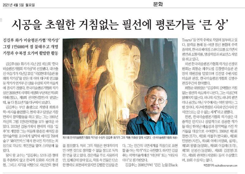 [2021.04.05] 2021 계명대 회화과 출신 김길후 화가, 제11회 한국미술평론가협회 작가상 수상-영남일보 |