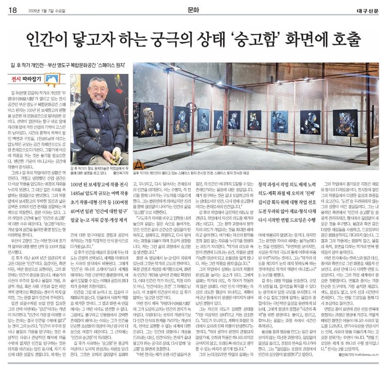 | [2026.01.07] 2026 길 후 작가 개인전…인간이 닿고자 하는 궁극의 상태 숭고함 화면에 호출-대구신문 |