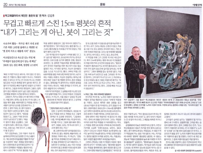 무겁고 빠르게 스친 15cm 평붓의 흔적 "내가 그리는 게 아닌 붓이 그리는 것"