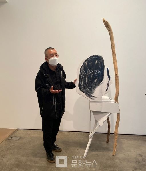 이번 전시에서 회화작품과 입체작품 3점도 함께 전시된다. 이 중 ‘노자의 지팡이’는 2016년 이후부터 합판이나 골판지 등 주변에서 쉽게 찾을 수 있는 재료를 사용한 삼발이 인물상 중 하나다.