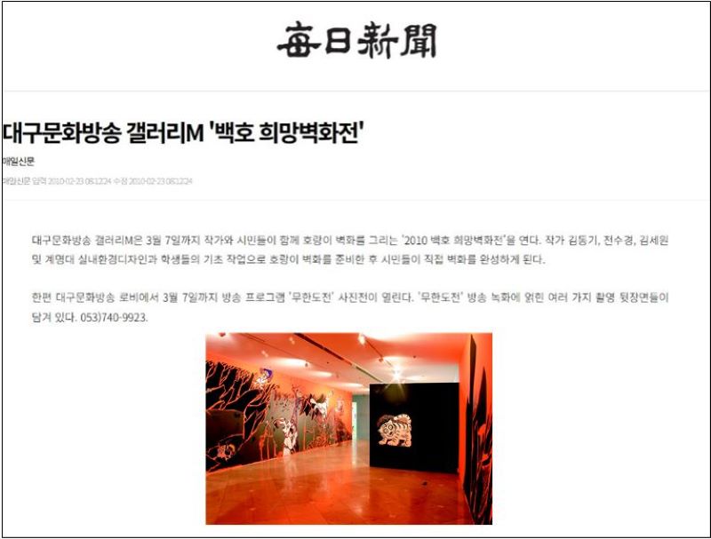 [공지]2010 대구문화방송 갤러리M '백호 희망벽화전' 기사 스크랩 : 네이버 블로그 (naver.com)